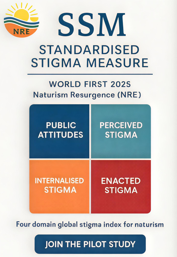 SYDNEY - Nyenta -- Naturism Resurgence (NRE) announces the launch of the world's first Standardised Stigma Measure (SSM), a groundbreaking instrument designed to quantify and analyse stigma related to naturism. This innovative tool will allow researchers, policymakers, human rights advocates, and naturist organisations worldwide to evaluate stigma in a consistent and scientifically meaningful way.
